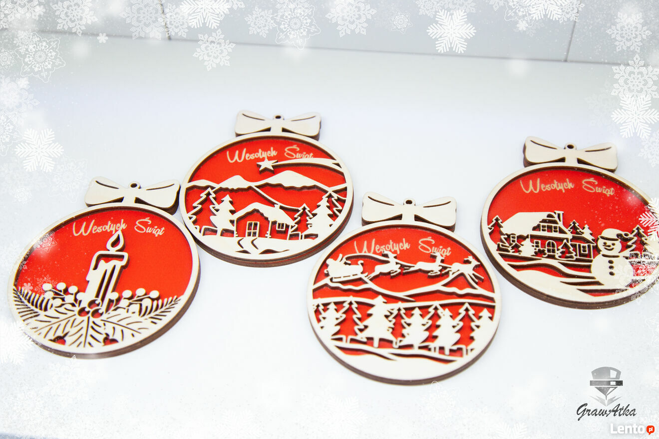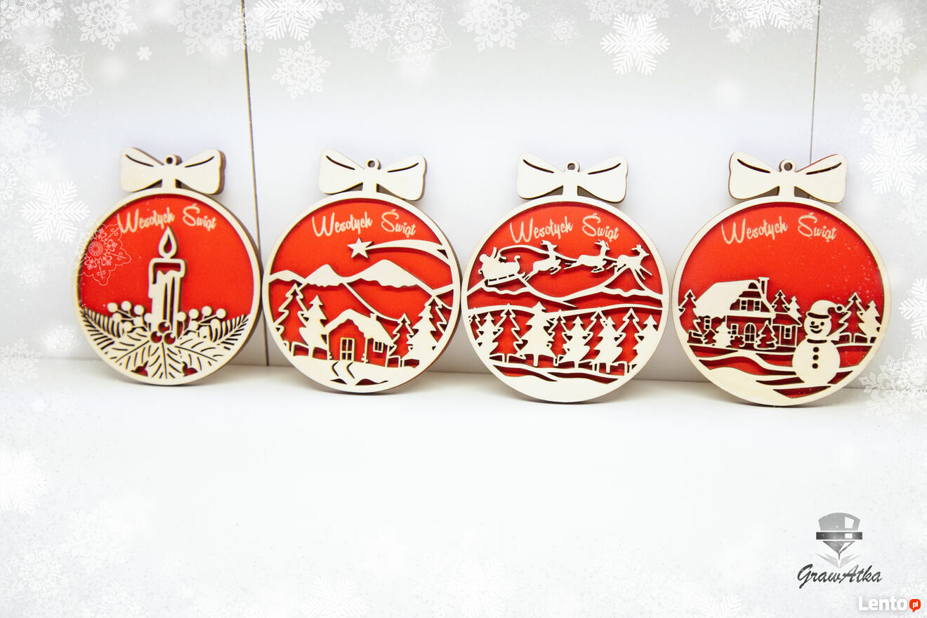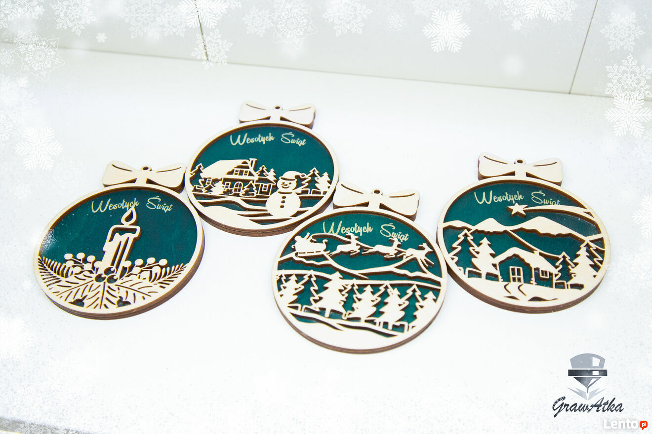 BOMBKI 3D Z Grawerem „Wesołych ŚwiątZestaw 4 Bombek 2D z Grawerem. Przedstawiamy Państwu projekt pracowni GrawAtka Wycinanie Grawerowanie świąteczne zawieszki bombki, z pięknymi ażurowymi wzorami. Każda bombka posiada wygrawerowany świąteczny napis „Wesołych Świąt”. Doskonale zastąpią klasyczne szklane bombki, lub nadadzą wyjątkowego stylu już istniejącej kompozycji świątecznej. Bombkę możesz również wręczyć jako drobny upominek dla rodziny czy przyjaciół. Świetnie sprawdzi się także jako bilecik załączony do świątecznego prezentu.